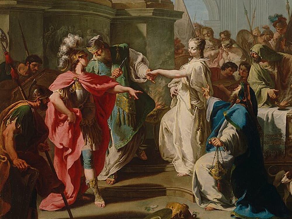 트로이 전쟁의 비극적 인물 폴릭세나의 희생을 그린 장엄한 역사화입니다.